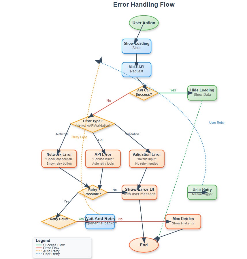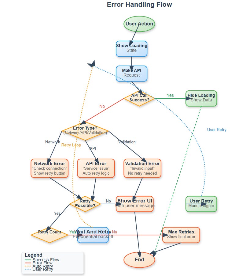 For Product Managers: Every error is a conversation with your user. Make those conversations helpful, not frustrating. Good error handling reduces support tickets and improves retention.